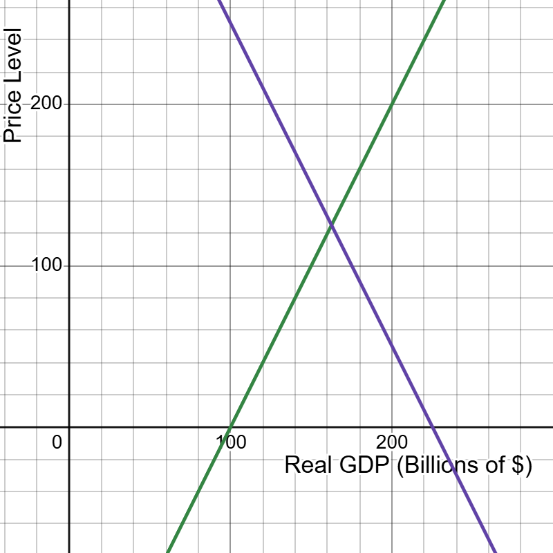 These are the total supply for goods and services in an entire economy (Aggregate Supply) and the total demand for those goods and services (Aggregate Demand). The axes on which they are defined are different than just “Quantity” and “Price”. Instead, these are defined by the Real GDP (or the total output) of an economy, and the Price Level (which is the average price of goods and services in the economy).