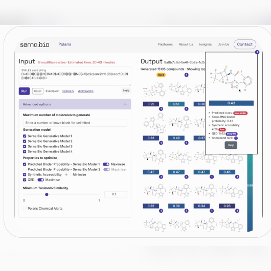 The tool and its usage are documented in a blog post made by the company, but basically, the tool uses various proprietary models to generate compounds that are chemically similar to an input seed compound. A mixture of proprietary and non-proprietary models are used to evaluate all of the molecules generated. These metrics are then pareto optimized in order to assign each compound a rank. All of this is displayed visually (thank you Anton), but the underlying data can also be downloaded for programatic evaluation.